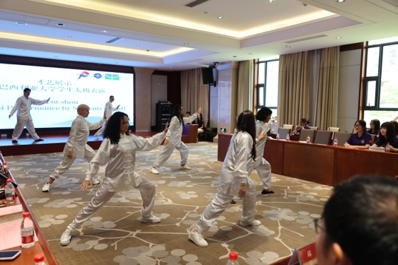 闭营仪式上,三国学生代表还带来了文化交流表演。金砖国家青年师生代表发言致谢并回赠了礼物。