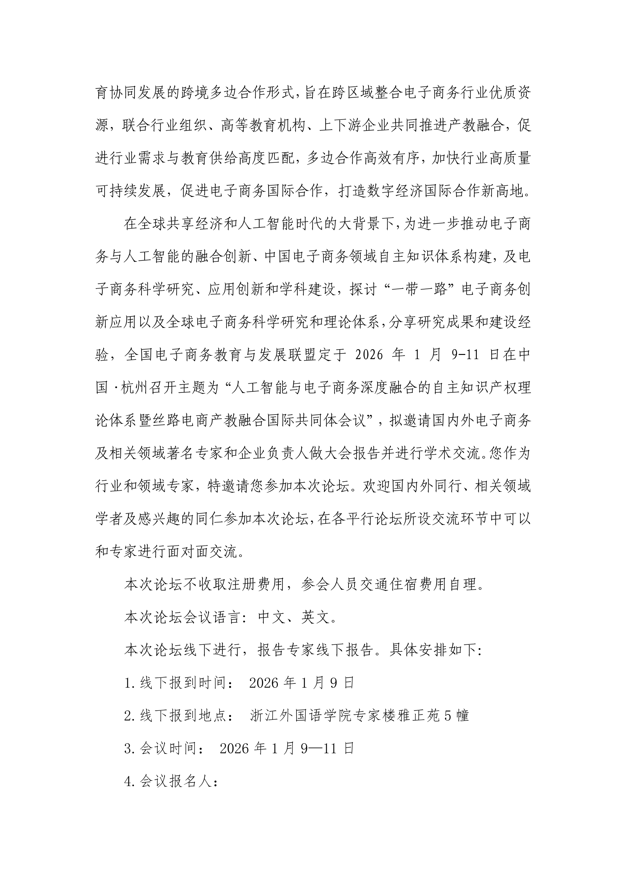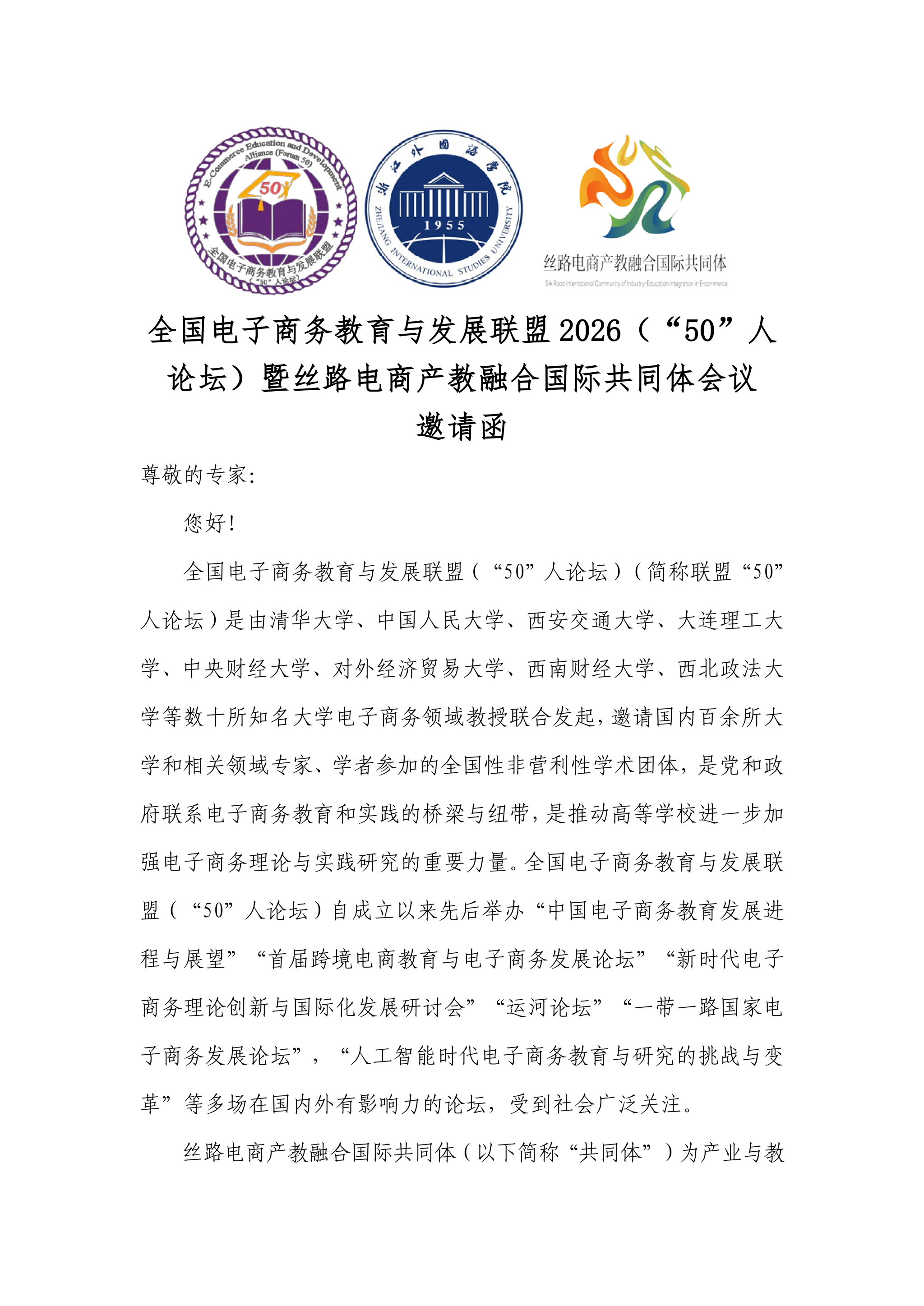 全国电子商务教育与发展联盟 2026(“50”人 论坛)暨丝路电商产教融合国际共同体会议 邀请函