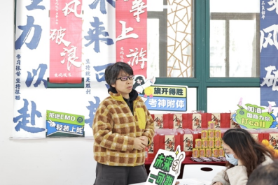 活动尾声,邱萍、顾小明与参会教师共同为考研同学发放考研“加油包”,每份“加油包”中都附有教师亲笔书写的考研祝福卡片,字里行间满含学院对学子的期许与关怀。据悉,今年学院在考研冲刺阶段持续优化服务举措:不仅开放“星耀国商”自习室,更将其升级为“24小时全天候自助使用”模式,为学子打造便捷、安静的学习空间,并为有英语写作冲刺需求的同学提供专项课程辅导,同时提前统筹安排考研送考车辆,精准响应考研学子实际需求,以全方位服务保障助力大家安心备考。