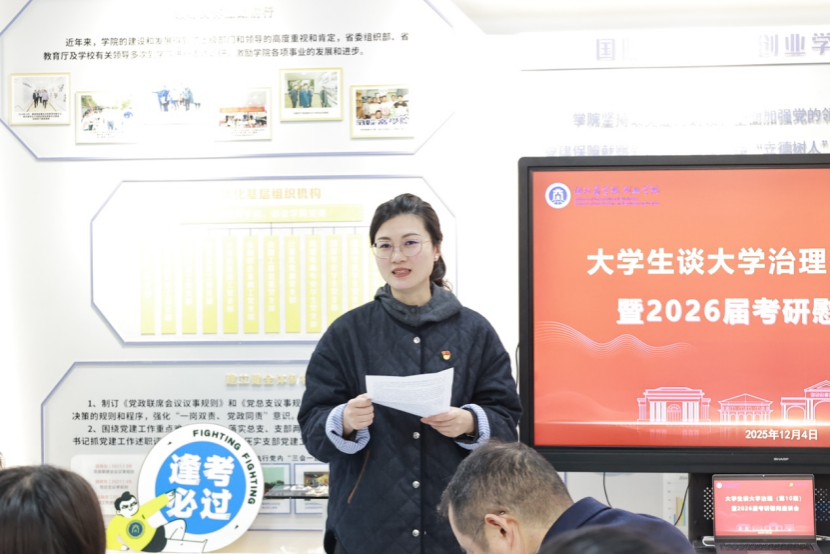 邱萍代表学院向全体2026届考研学子致以亲切关怀,并寄语同学们坚守三份“信心”:一是相信国家与学校不断完善的考研政策制度,将为大家搭建更广阔的升学平台;二是相信科学高效的冲刺复习方案,能帮助大家突破备考瓶颈、提升学习效能,以扎实的学识素养展现良好学习风貌;三是相信学校多年的优质培养,已为大家塑造了开阔的视野与过硬的能力,无论考研结果如何,都能在多元发展道路上绽放光彩。