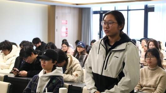 互动交流环节,现场学子踊跃提问,围绕自身专业学习、未来职业发展方向,以及中欧商贸合作中的机遇与挑战等问题与吴侨玲教授展开深入探讨。