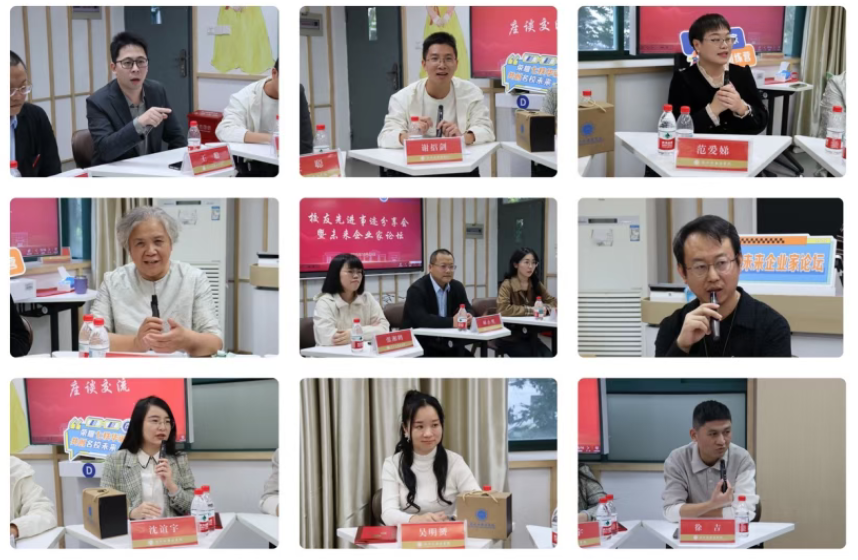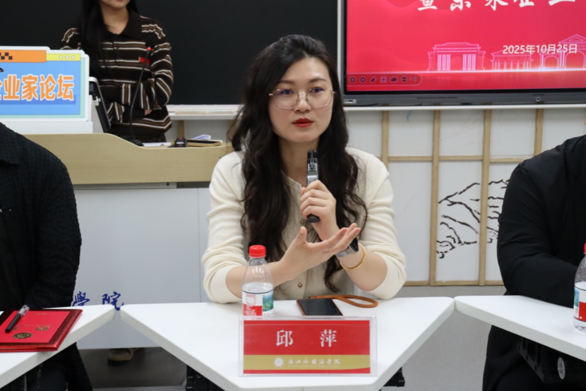 10月25日,浙外建校70周年校庆日当天,我院“未来企业家论坛”暨优秀校友经验分享会在望B105举行。我院党委书记、副院长邱萍,党委副书记、纪委书记顾小明,服务基层校友张湘鹤、钱建盼,工商行业校友会副会长、启正数字科技总经理王聪,副会长、始丰溪文化战略咨询创始人王小塞,副秘书长、绍兴市柯桥区一友纺织品公司经理谢招剑,理事、浙江巧口教育科技有限公司董事长蒋跃先,鹿鸣椿叁贸易创始人吴明赟、上海钢联数据业务部大区总监范爱娣,杭州水梵猫文化创意策划有限公司总经理沈谊宇,极氪智能科技有限公司网络安全技术负责人徐吉和未来企业家训练营学员代表出席,学工办主任孙静主持活动。