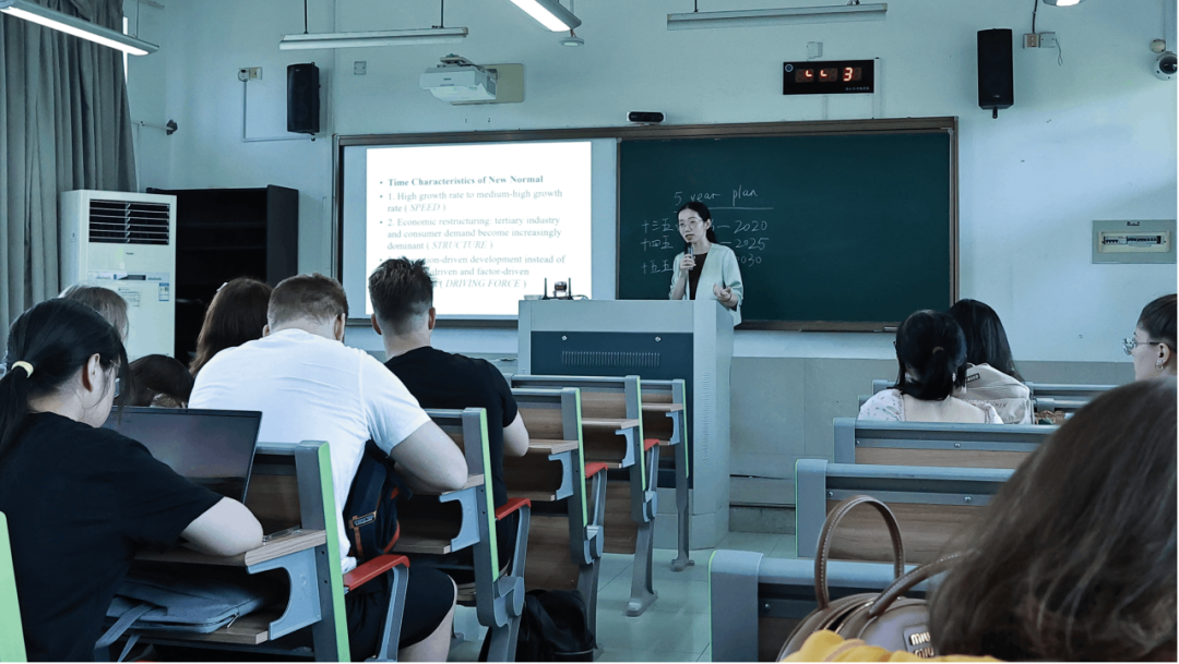 王殿开老师主持的“金砖国家供应链管理与跨文化交流”课堂里,中英双语的讨论声此起彼伏。课程从“反向物流与循环经济”“消费习惯差异”等主题切入,通过将俄罗斯远东木材回收案例与中国“双碳”政策下的循环产业对比,巴西狂欢节电商爆单经验碰撞中国“双十一”物流奇迹,让“国际化”不再停留于纸面。