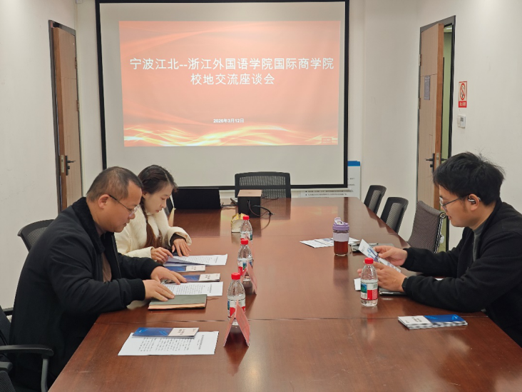 在与江北区人才主中心、鄞州区人才中心联合召开的校地交流座谈会上,顾小明介绍了学校学院的发展概况、人才培养模式、2026届毕业生的生源结构及当前就业情况。江北区人才中心主任陈永珍、鄞州区人才中心主任宋磊杰分别介绍了各自区域的经济发展现状、重点产业布局,以及针对毕业生的安居购房等专项人才扶持政策。双方围绕校地人才对接、专场招聘会举办、实习岗位动态匹配等议题展开深入探讨,初步达成了人才供需动态对接的合作意向。