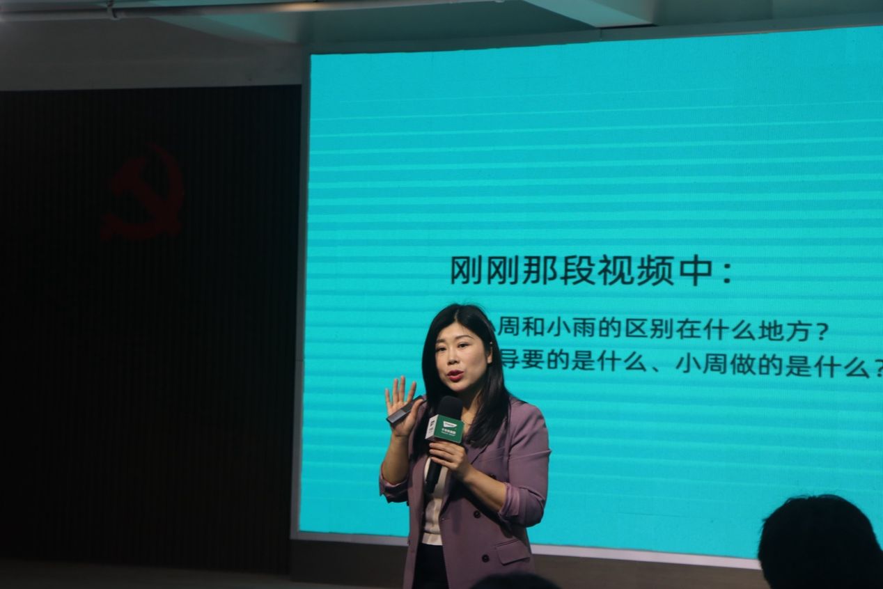张佳介绍训练营新人培养体系“职场魔方”,并以“初入职场如何精准把握工作核心要求”为切入点,开启首次授课。她通过视频案例分析引导学员讨论,邀请中外学员代表展示成果,助力学员实现从“学生思维”到“职场思维”的转变。
